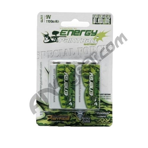 DescriptionSimply the best 9V ever made! A cool design to fit the camo trend and the long lasting power specific to Energy Paintball batteries. The double pack fits your high end loader needs. It's no wonder why so many pro players use them. Energy Paintball batteries is the choice of the top pro players such as Ryan Greenspan (Dynasty), Nicky Cuba (Ironmen), Chris LaSoya (Trauma), Mr. U (Ironmen), Alex Lundquist (Red Legion) and many more.... They chose Energy Paintball battery, how about you?